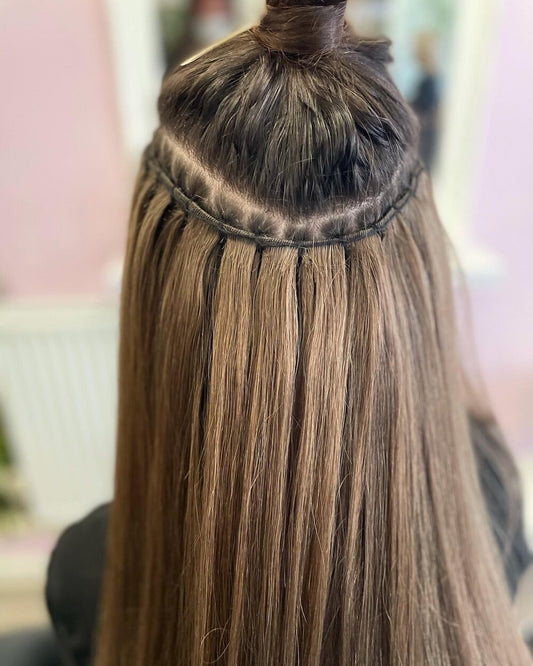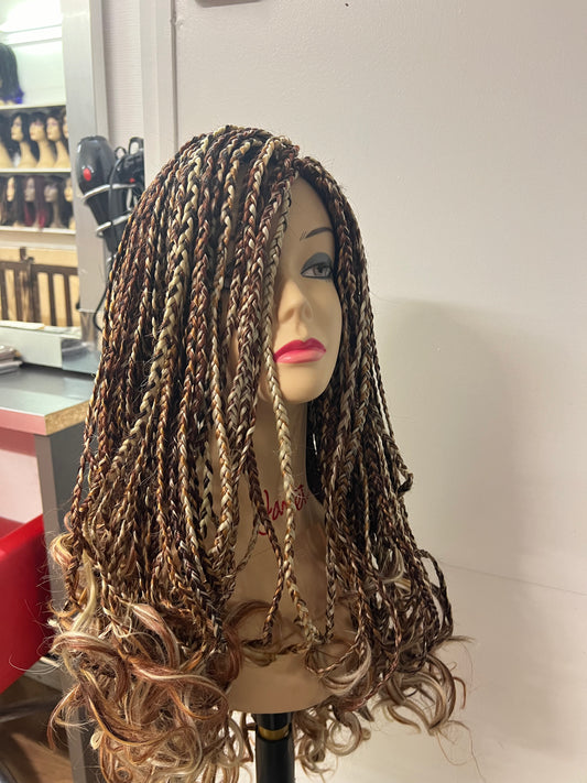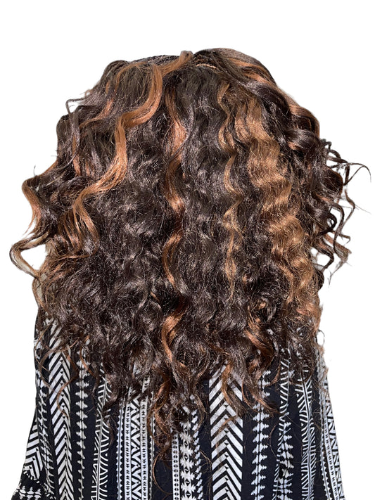 Perruque tressée piqué lâché Tye and dye châtain clairs - Xiomena