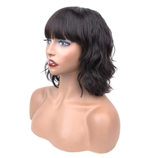 Perruque avec frange ondulé en vrais cheveux humains Grâce - Pas cher, PROMO!