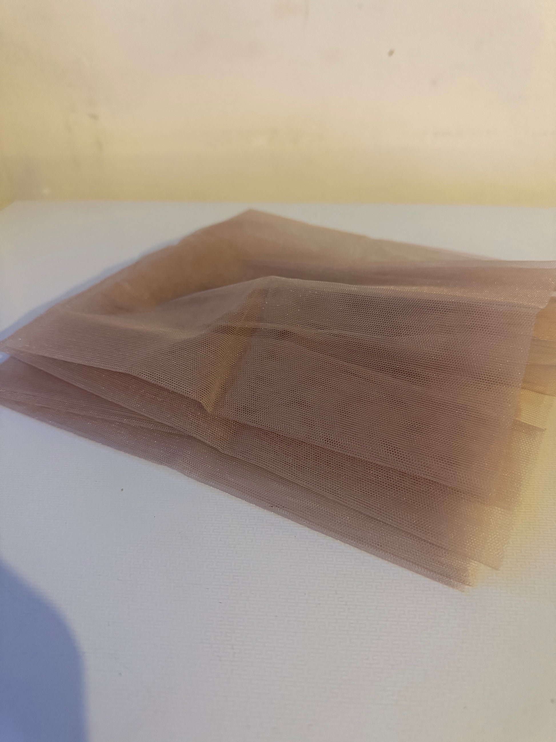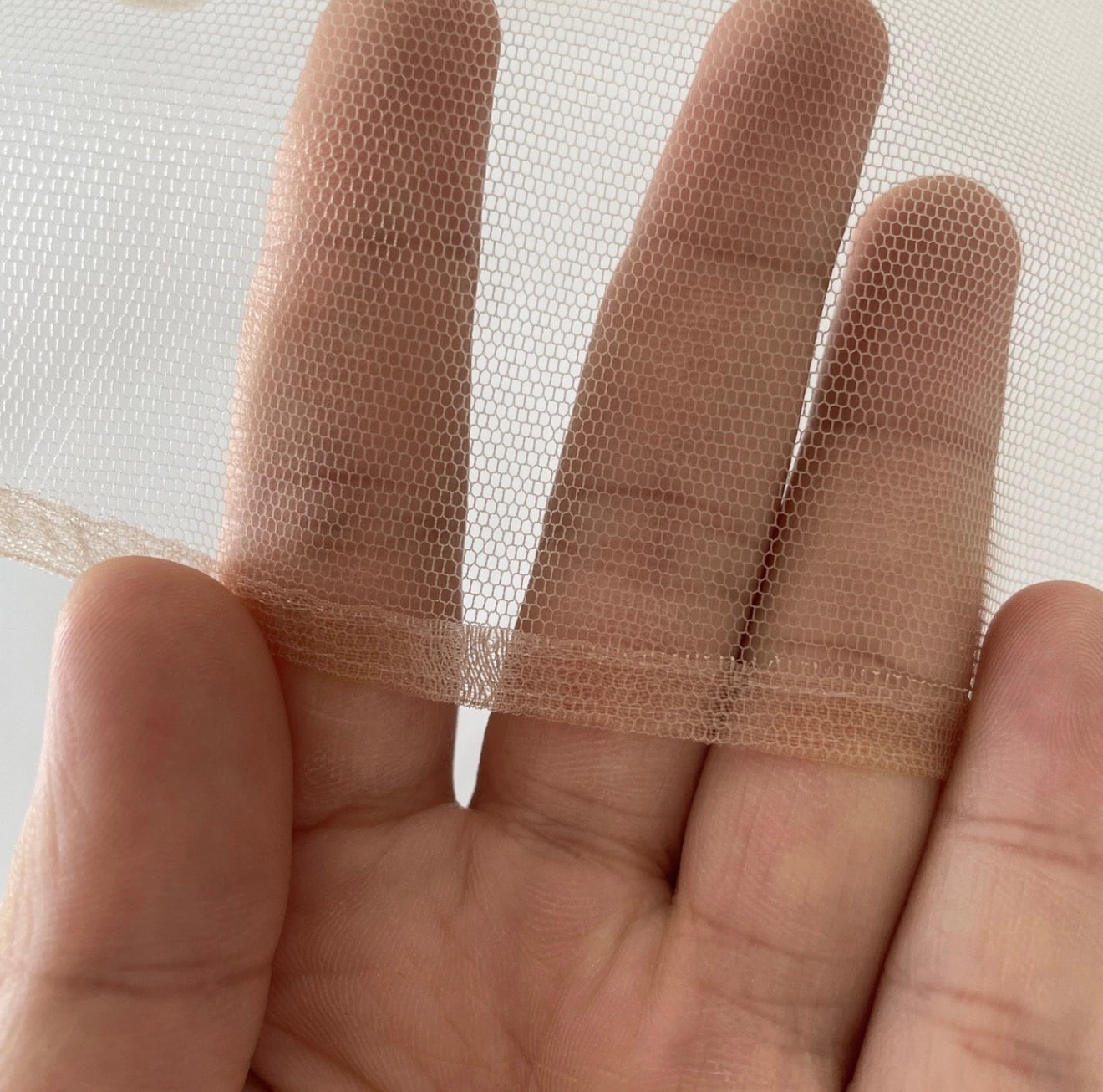 Tulle en dentelle suisse HD ultra-transparente de luxe. Une Base sur laquelle on confectionne moyennant la technique au crochet des closures, frontales en dentelle suisse HD ultra-transparente. 1/4 mètre.