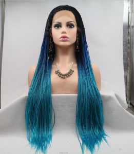 Micro Tressé Lace Front Wigs Noir longue en cheveux synthétiques résistant à la chaleur.
